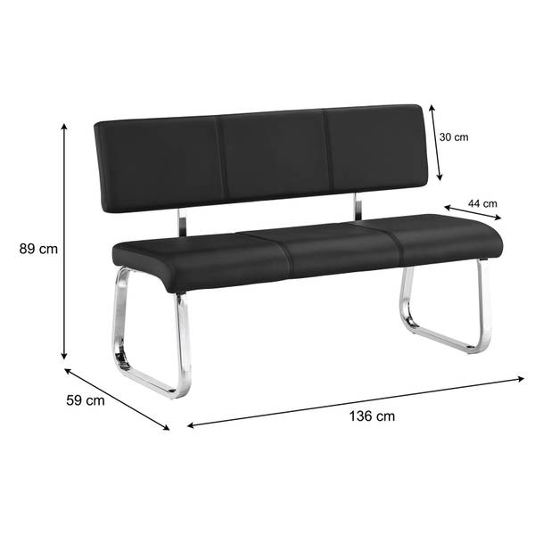 - Le banc est rembourré et recouvert d'un revêtement synthétique de coloris noir.