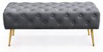 Bout de lit capitonné pieds métal doré MONACO dès le tout début définit décoration d'intérieur prestigieuse. Vous pourrez le disposer dans une chambre, un dressing ou même un bureau. Dans le hall, le banc peut être utile comme un banc d'entrée stylé où vous pouvez vous asseoir et enlever vos chaussures confortablement. Grâce à sa longueur de 100 cm et à sa capacité de charge allant jusqu'à 200 kg, sur le banc rembourrée Monaco deux personnes peuvent s'asseoir en même temps. La profondeur du meuble est de 42 cm et sa hauteur de 41 cm. Le tissu en velours orné de surpiqûres et de boutons décoratifs, ainsi que les pieds dorés, confèrent au produit un aspect chic. Nous proposons également des modèles similaires dans d'autres dimensions: MADRID et QUADRA.