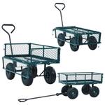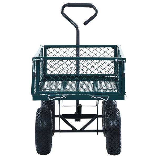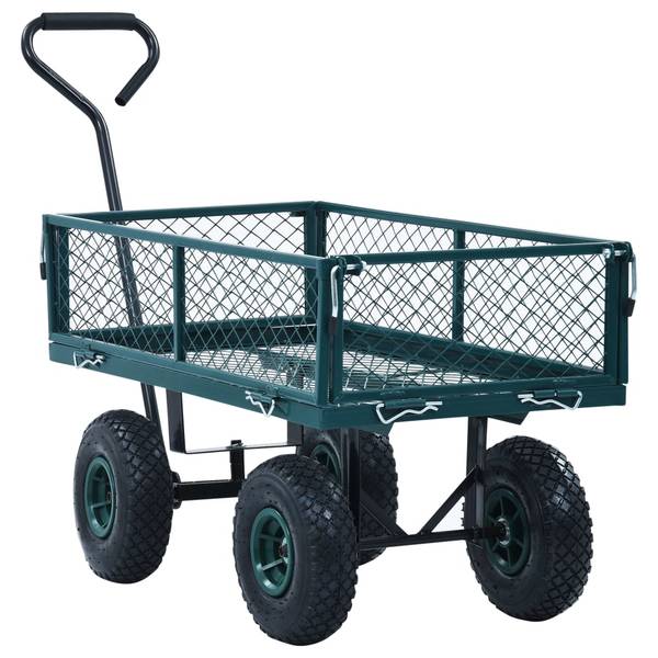 Fabriqué en acier robuste, ce chariot de jardin est extrêmement stable et durable. Avec une capacité de charge maximale de 250 kg, le diable peut facilement transporter des fleurs, des feuilles, des bûches et d'autres objets. Les panneaux latéraux peuvent être ouverts avec des attaches à dégagement rapide pour un chargement et un déchargement faciles. De plus, les grandes roues pneumatiques robustes vous permettent de tirer sans effort le chariot sur des surfaces accidentées. La poignée rembourrée assure également une prise ferme.