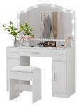 L'élégante coiffeuse Lumira n'est pas seulement un meuble pratique, mais aussi un lieu de beauté et de soins personnels. Avec son miroir intégré et son éclairage d'ambiance, elle crée l'atmosphère parfaite pour votre rituel de maquillage quotidien. Accordez-vous chaque matin un moment de calme et de sérénité pendant que vous vous préparez à votre coiffeuse personnelle. Sentez-vous comme une véritable diva hollywoodienne lorsque vous vous installez sur le confortable tabouret et que vous oubliez le monde qui vous entoure. Avec la table de maquillage Lumira, votre rituel de beauté matinal devient une expérience très spéciale.