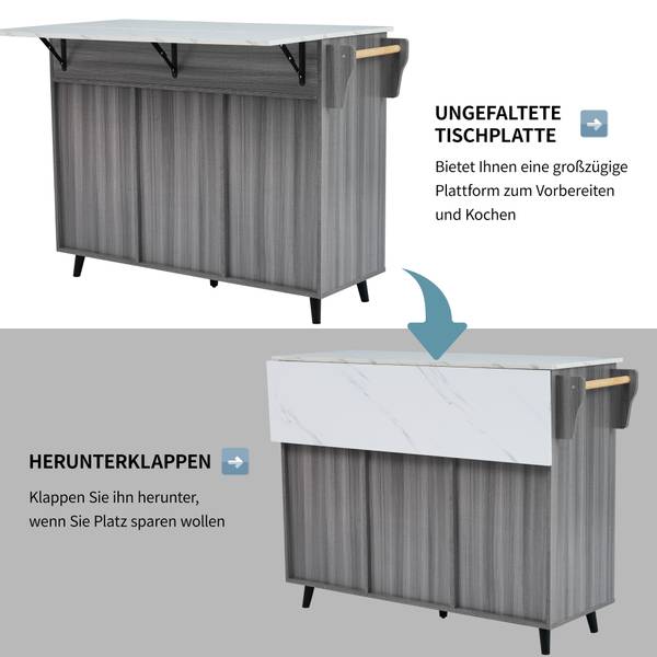 🌺Ce chariot de salle à manger de style européen est équipé d'un panneau d'extension pliable de 30 cm et d'un cadre de support en métal en bas.