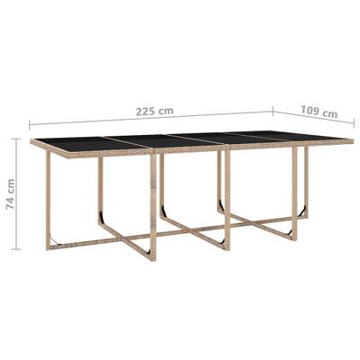Cet ensemble à dîner en résine tressée, au design élégant, sera un excellent choix pour manger en plein air ou vous détendre dans le jardin. Constitué de résine tressée résistante aux intempéries et à l'eau, l'ensemble à dîner est facile à nettoyer, résistant à l'usure et adapté à un usage quotidien. Les cadres en acier laqué rendent la table et les chaises solides et robustes. Grâce à leurs constructions légères, tous les éléments sont faciles à déplacer. Le dessus de table en verre est facile à nettoyer avec un chiffon humide.