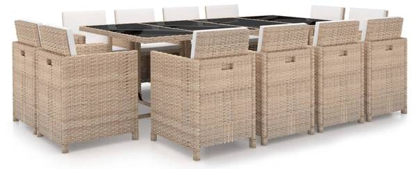 La livraison comprend 1 table, 12 chaises et 24 coussins. Remarque : nous recommandons de couvrir l'ensemble pendant la pluie, la neige et le gel.