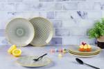 La petite assiette de taille idéale, qu'on empile sur la grande en alternant (ou pas) les motifs afin de créer un dressage authentique. Réhaussée en son centre avec des rebords légèrement inclinés, elle s'adapte à tous les mets de l'entrée au dessert.