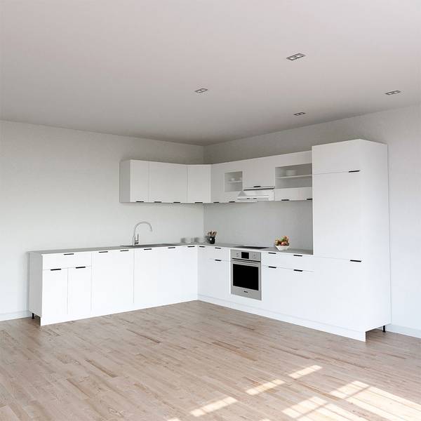 L'armoire VCM avec bleu et les pieds confus s'adaptent à presque toutes les cuisines. Le corpus est de 16 mm de puits et est donc particulièrement stable.