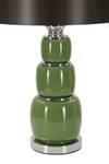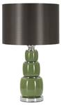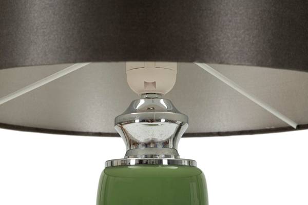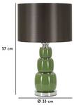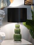 Lampe de table avec base en verre vert et abat-jour en velours noir, idéale pour éclairer avec style. Dimensions : Ø 33 x 57 cm. Ampoule E27 non incluse, puissance maximale : 40 W, fréquence : 50 Hz, indice de protection : IP20.