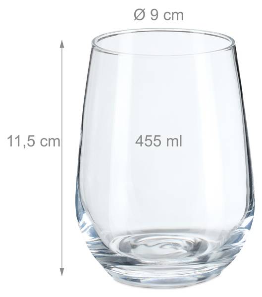 - Dimensions des verres de 455 ml H x D : env. 11,5 x 9 cm ; poids : env. 240 g