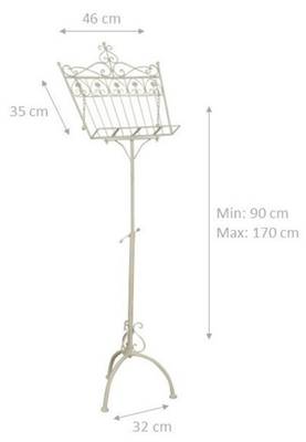 POLYVALENCE EXCEPTIONNELLE: Parfaitement adapté pour différents usages, ce lutrin peut servir de support pour livres, partitions musicales, menus de restaurant, ou même comme présentoir publicitaire lors d'événements ou dans des espaces commerciaux. Sa finition blanc antique le rend particulièrement adapté aux environnements élégants comme les salles de réception, restaurants gastronomiques ou espaces d'exposition haut de gamme.