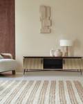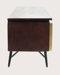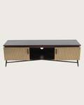 Doté de deux portes latérales avec façades rainurées et une niche centrale ouverte, il permet un rangement optimal pour vos équipements multimédias, télécommandes ou objets déco. La robustesse du bois de manguier massif garantit une grande durabilité, tandis que la structure métallique assure stabilité et solidité. Son allure sophistiquée et sa finition laiton vieilli ajoutent une note chaleureuse et tendance à votre salon.