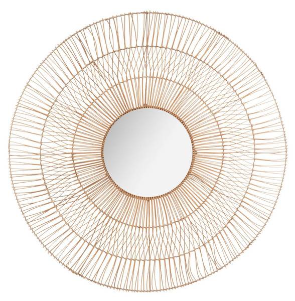 Ce miroir rond original semble tout droit venir d'un atelier de confection artisanale. Il possède un large cadre filaire composé de trois arceaux en rotin avec la glace au centre. Accroché au mur, il deviendra la pièce maitresse de votre décoration grâce à ses dimensions généreuses.