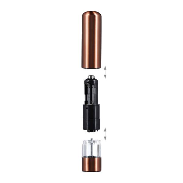 Le moulin électrique fonctionne par pression du pouce et s'utilise avec des piles non fournies. Une lumière LED bleue vous donne une bonne visibilité de ce que vous broyez.