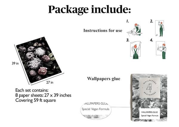 À INSTALLER SEUL, FACILE À APPLIQUER ET À RETIRER – Vous recevrez de la colle et toutes les instructions pour l’application de notre papier peint. Retirez le en appliquant de l'eau chaude.