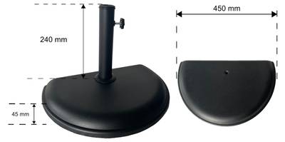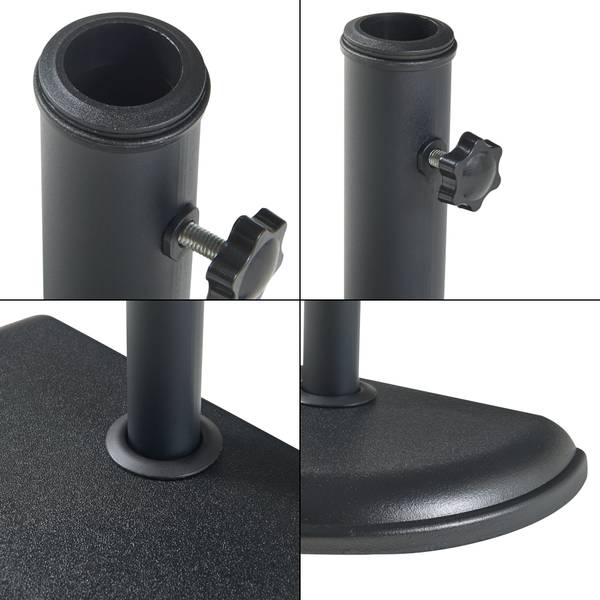 Ce pied de parasol en béton est conçu pour résister aux intempéries, sa base lourde assure une stabilité exceptionnelle. Fabriqué avec un tube solide en fer, il ajoute une touche d'élégance à votre espace extérieur. De plus, sa vis de blocage permet de fixer le parasol facilement, sans nécessiter d'outils supplémentaires. Le dessous de la base en béton a une couche spéciale pour protéger les surfaces sensibles des rayures. Livré avec trois anneaux d'adaptation de 30, 34 et 38 mm de diamètre, il peut également accueillir le tube d'un parasol d'un diamètre allant jusqu'à 45 mm sans adaptateur.