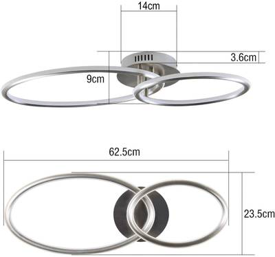 Dimensions : 62,5 x 23,5 x 9 cm, Tension : 230 V, Puissance : 29 W, 2 320 lumens, Couleur : 3 000 K, blanc chaud.