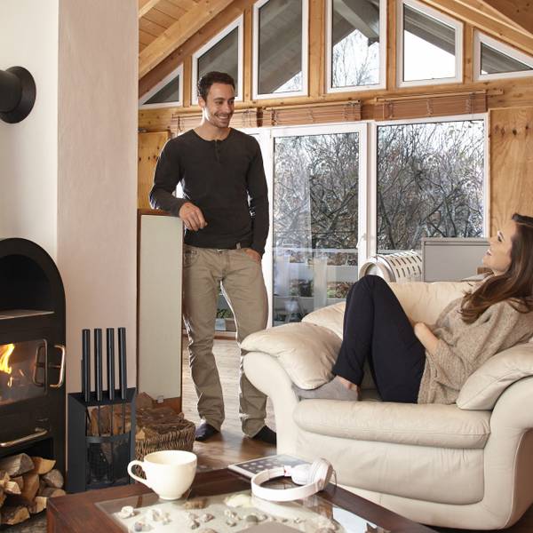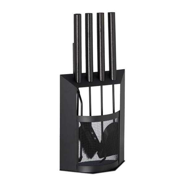 Un feu de chemine est particulièrement agréable lors des jours froids ou pluvieux et amène de la chaleur et convivialité. Ce serviteur de cheminée vous permet de maintenir votre feu plus longtemps mais aussi de garder votre cheminée propre. Suspendez vos outils au support, ainsi ils seront toujours à portée de main. L’ensemble en noir mat est fait en acier de qualité pour un aspect très moderne. Le tout est très décoratif et pratique dans votre salon.