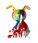 - PRODUIT : Statue petit chien assis blanc avec coulures peintures multicolores SNOOP DRIPS.