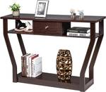 La console est robuste et durable est-elle est fabriquée en MDF de haute qualité. La surface est résistante à l'usure et étanche, de sorte qu'elle ne s'égratigne pas facilement. La base inférieure et la fixation anti-basculement assurent une utilisation stable et sûre. Les trois étagères ouvertes et un tiroir supplémentaire offrent suffisamment d'espace de rangement et de présentation pour que vous puissiez trier vos articles selon vos besoins. Les pieds incurvés uniques sont pleins de sens de la mode et impressionnent profondément votre invité. Cette table multifonctionnelle est parfaite pour le salon, la chambre à coucher, le couloir, l'entrée.