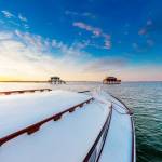 Dimensions de Tableau sur verre Pinasse cabane 30x30 cm