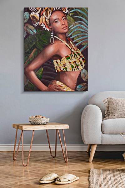 Peinture sur toile avec cadre en bois représentant un visage de femme avec des applications en tissu. Les tons clairs ajoutent une touche de classe à n'importe quel mur. Peut être combiné avec tout type d'intérieur. Dimensions : 90x120 cm, épaisseur du cadre 3 cm.