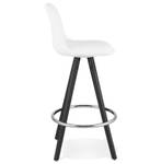 Le tabouret snack mi-hauteur 'FLORENCE MINI' en tissu bouloché blanc et 4 pieds en bois noir vous permet de partager d'agréables moments avec vos proches.