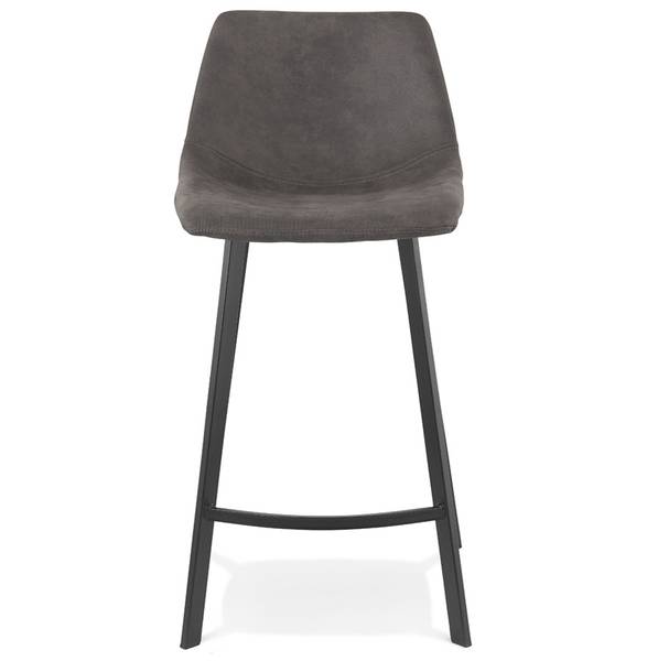 Le tabouret snack mi-hauteur 'FUJI MINI' en microfibre gris foncé avec pied en métal noir, alliant esthétisme et praticité, s'adapte à tous les intérieurs.